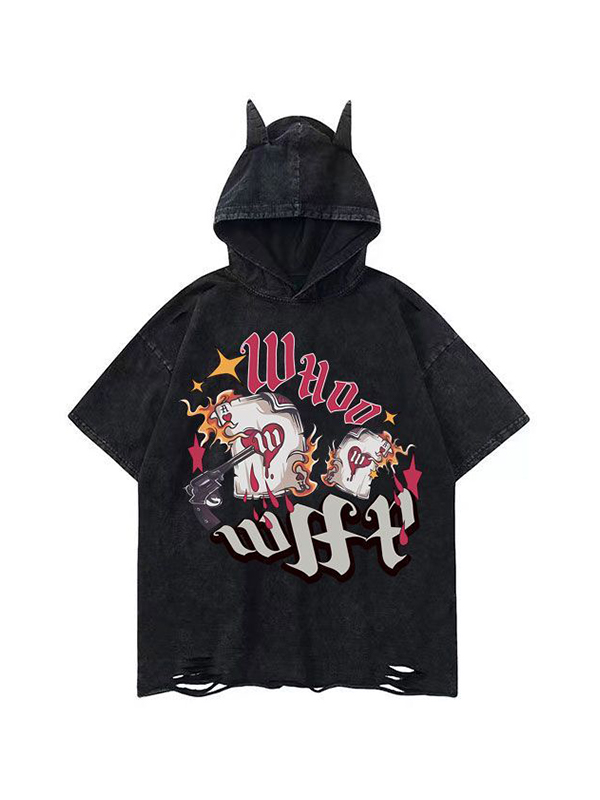 Kurzärmliges Herren-T-Shirt mit Distressed-Print und Tattered-Saum-Kapuze
