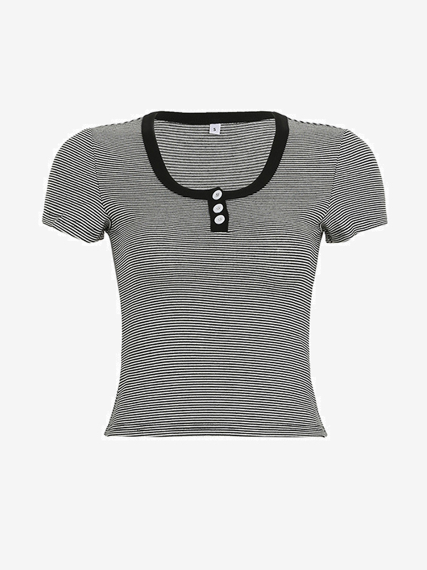 Vintage gestreift drei Knopf kurze Ärmel