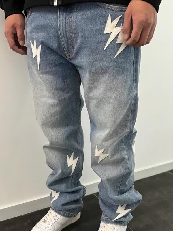 Lockere Jeans mit Patch-Leder-Lightning für Herren