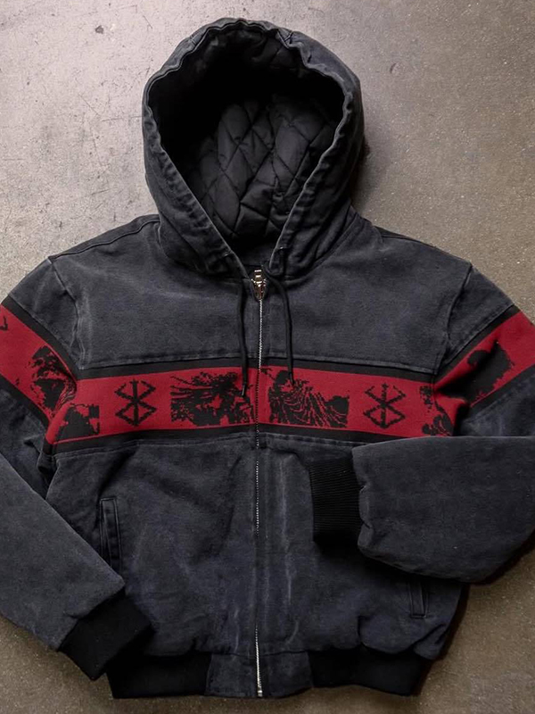 Kontrastfarbener, übergroßer Kapuzenpullover mit Spinnenmuster und durchgehendem Reißverschluss