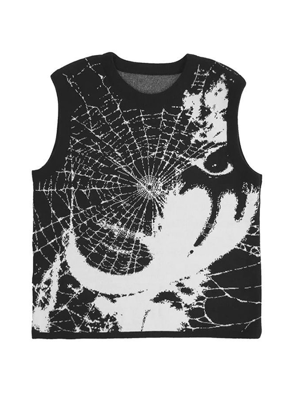 Herren-Street-Strickpullover mit Spinnennetz-Jacquardmuster, ärmellos
