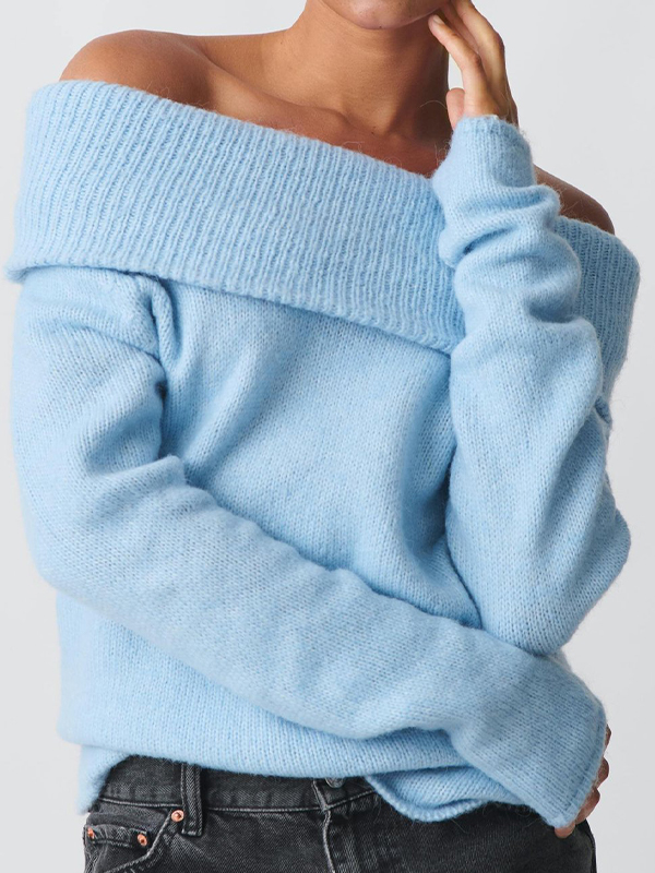 Pullover mit schrägem Ausschnitt und lockerer Taille