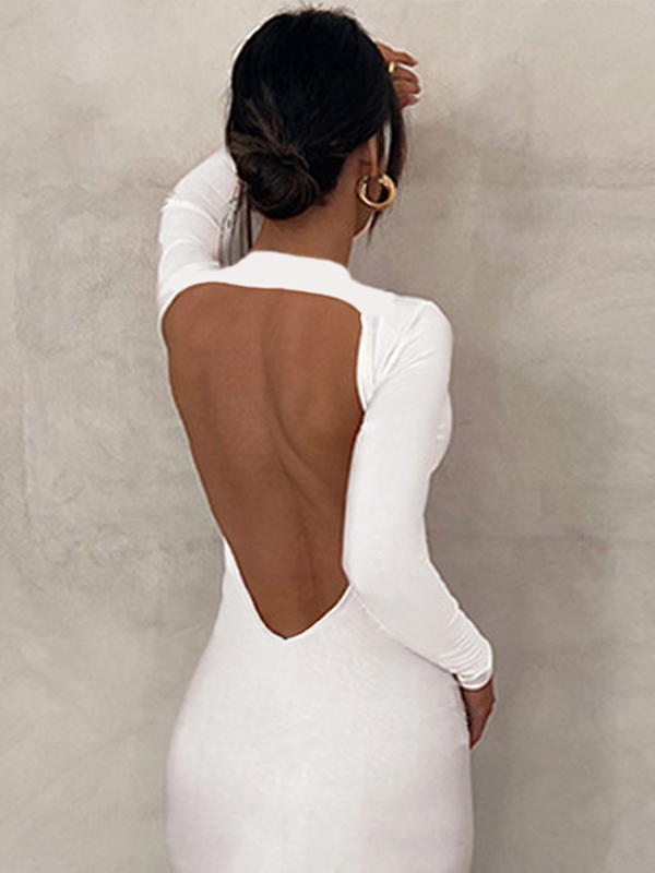 Rückenfreier Langarm-Jumpsuit mit ausgestelltem Bein