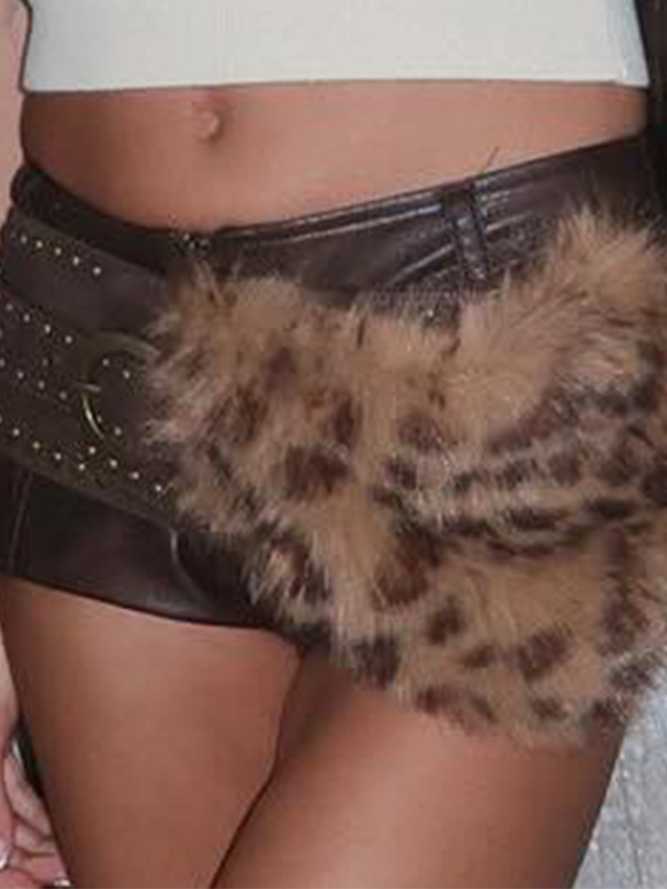 Vintage-Gürtel mit Pelznieten und Leopardenmuster