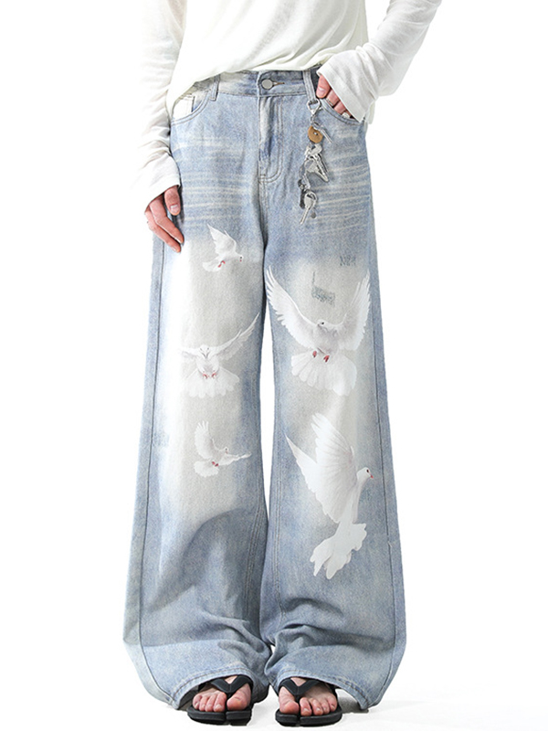 Herrenhose mit Buchstabendruck und mehreren Taschen und Kordelzug und weitem Bein
