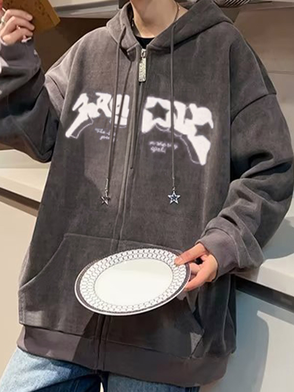 Beflockter, übergroßer Kapuzenpullover mit Sternenmuster für Herren