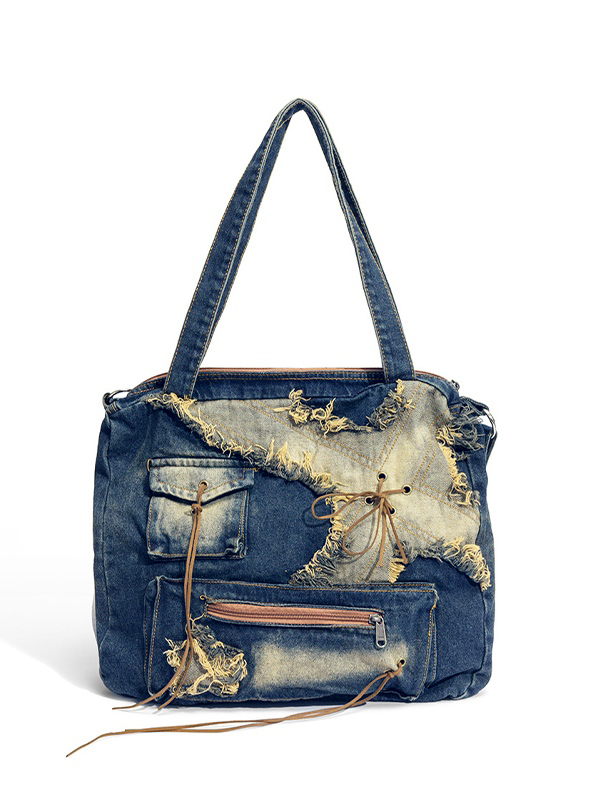 Vintage Distressed Raw Flap Umhängetasche mit Reißverschlussdetail