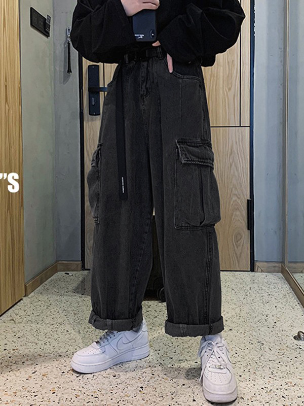 Herrenhose mit weitem Bein und kontrastierendem Paspeldetail und Kordelzug