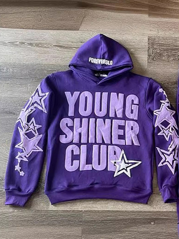 Übergroßer Kapuzenpullover mit Stern-Schriftzug und langen Ärmeln für Herren
