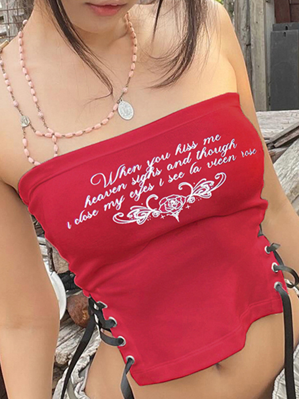 Bandeau-Top mit bedruckten Seitenträgern und Monogramm