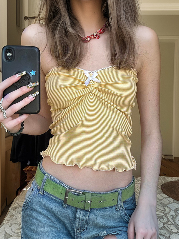 Einfarbig gestreiftes Bustier-Bandeau-Top