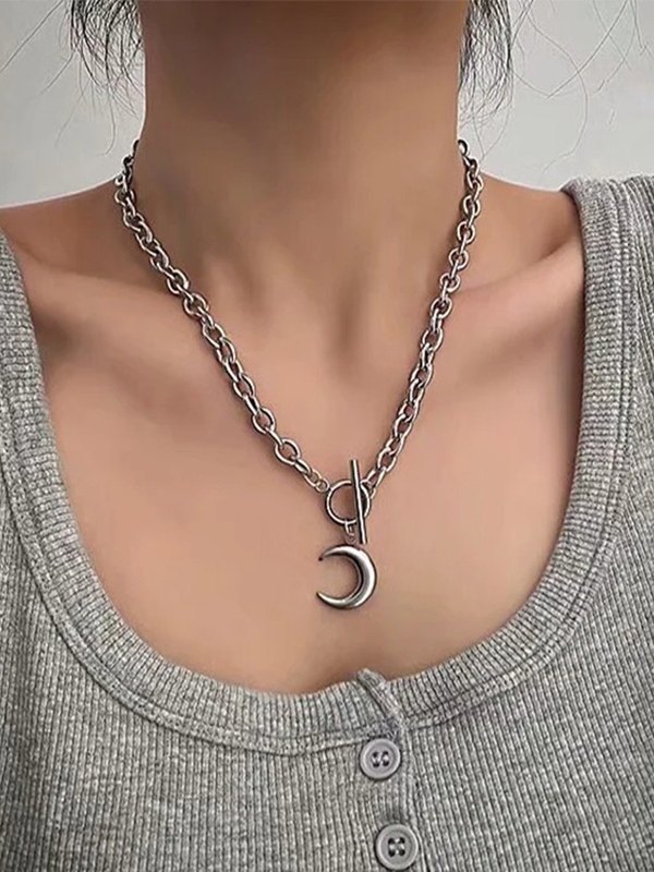Silberne Halbmond-Anhänger-Toggle-Halskette