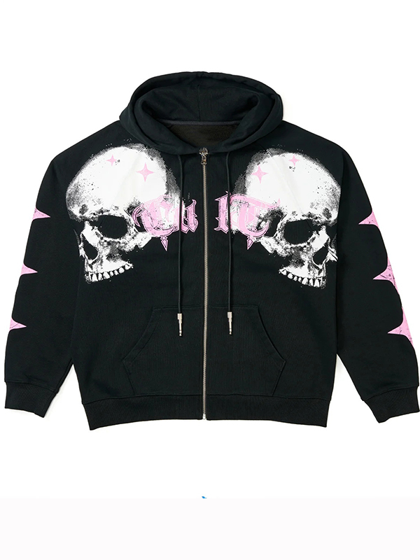 Kontrastfarbener, übergroßer Kapuzenpullover mit Spinnenmuster und durchgehendem Reißverschluss