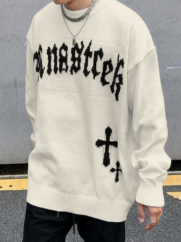 Herren-Sweatshirt mit Vintage-Buchstaben-Print und Rundhalsausschnitt