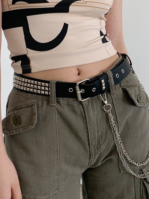 Abnehmbarer Kettennieten-PU-Ledergürtel