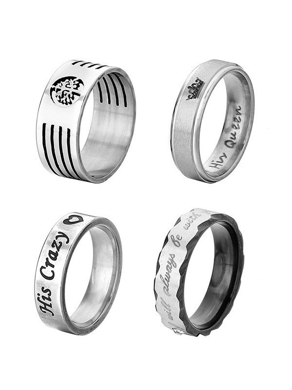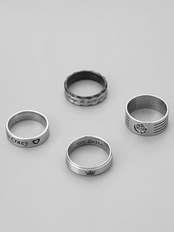 4-teiliges Ring-Set mit geschnitzten Buchstabenmustern für Herren
