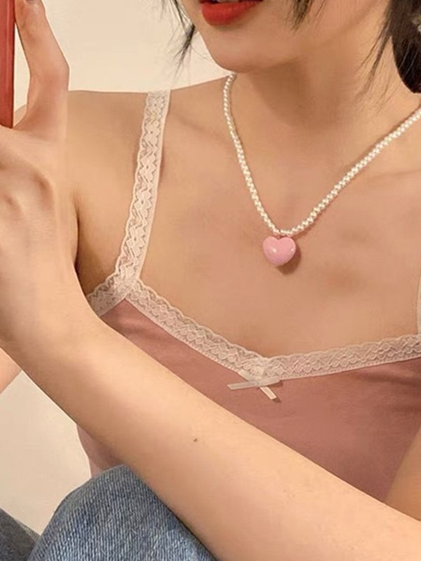 Acryl-Herz-Charme-Faux-Perlen-Halskette
