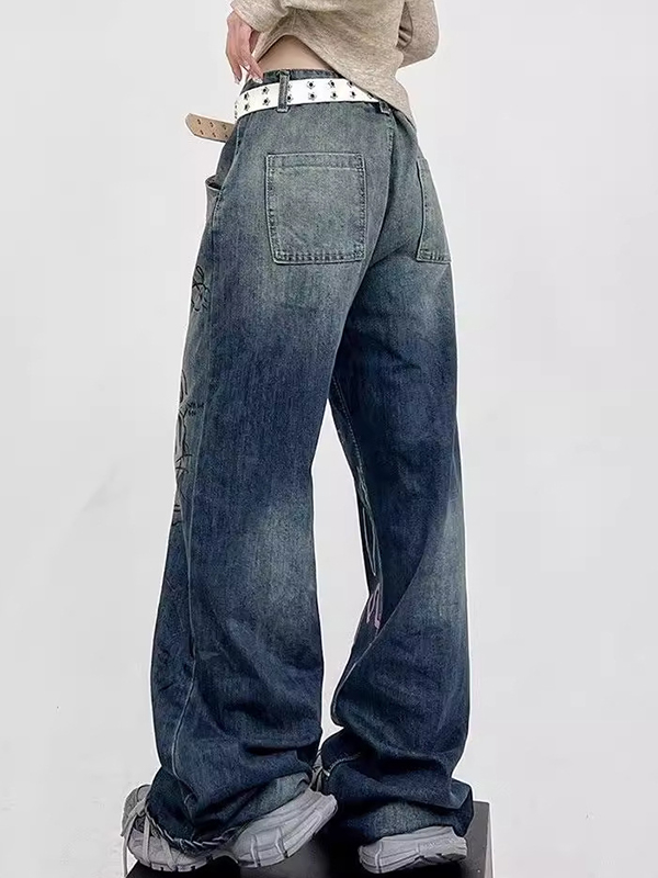 American Vintage – High Street – Boyfriendjeans mit Graffiti-Print Menge