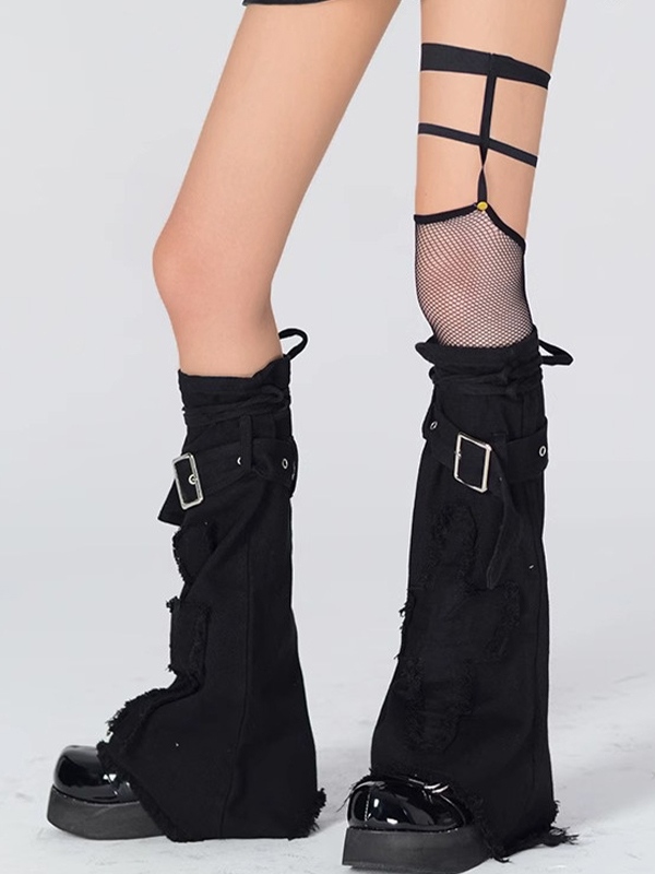 Ausgestellter Beinwärmer mit Kreuzmuster und Schnürung