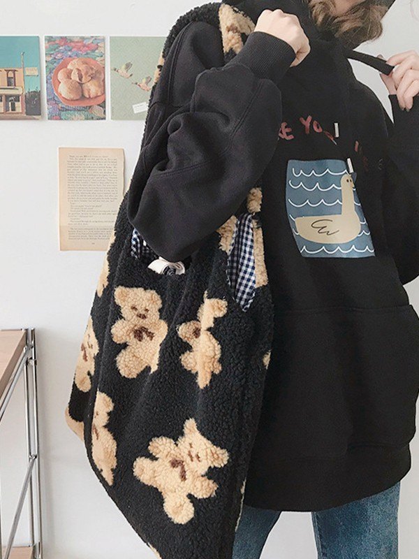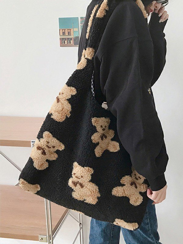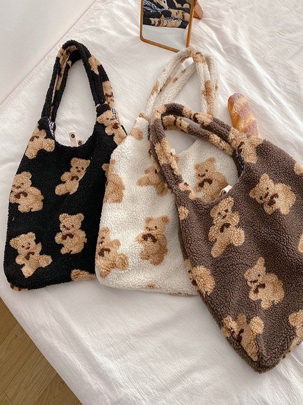 Bären-Muster-Fleece-Umhängetasche Menge