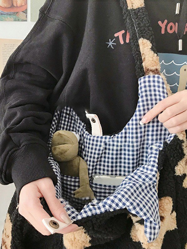 Bären-Muster-Fleece-Umhängetasche