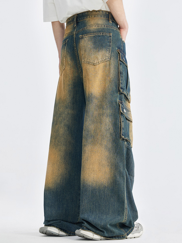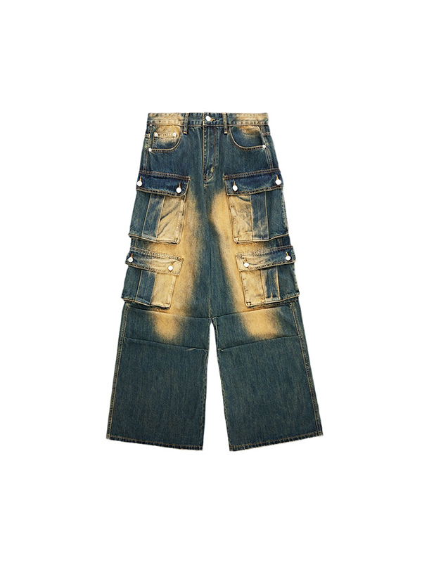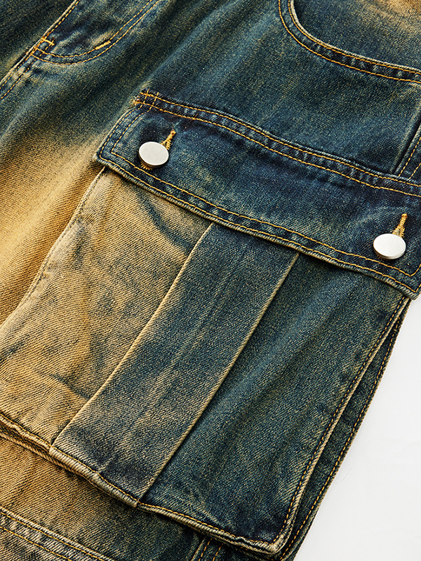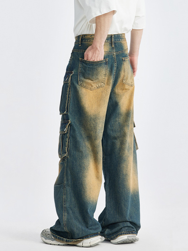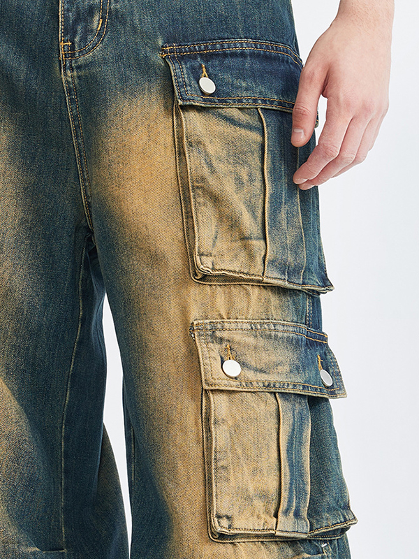 Cargo-Jeans im Retro-Look mit mehreren Taschen und Used-Look