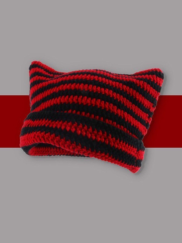 Ear Design Kontrast gestreifte Beanie-Mütze