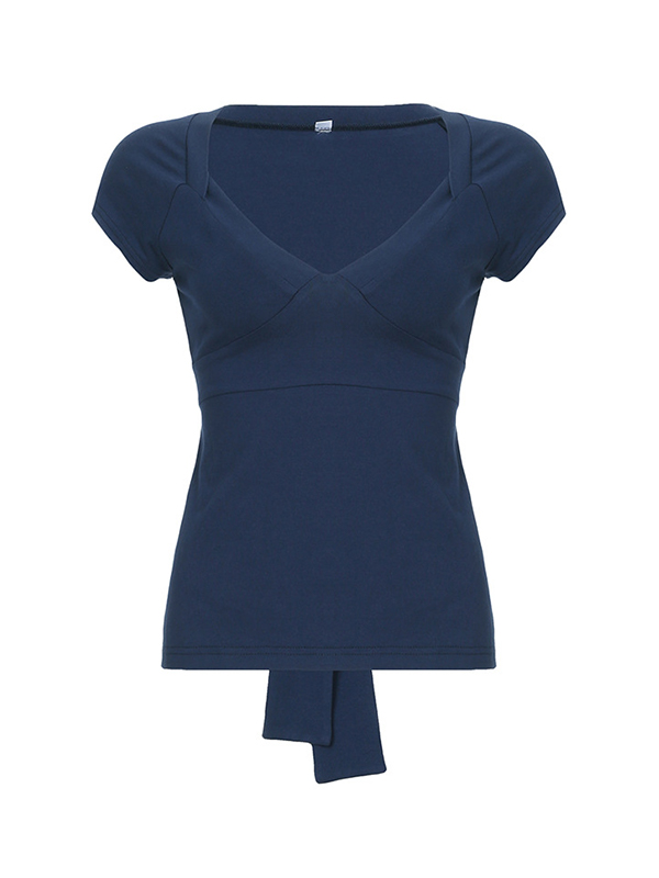 Einfaches Kurzarm-T-Shirt mit V-Ausschnitt