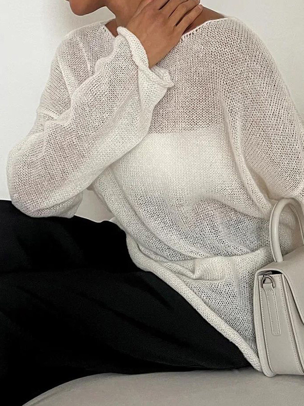 Einfarbige, lockere Strickwaren mit langen Ärmeln