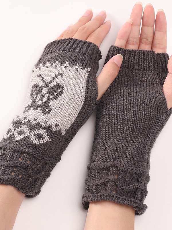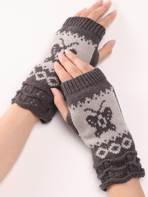 Fingerlose Handschuhe aus Jacquard-Strick mit Schmetterlingsmotiv Menge
