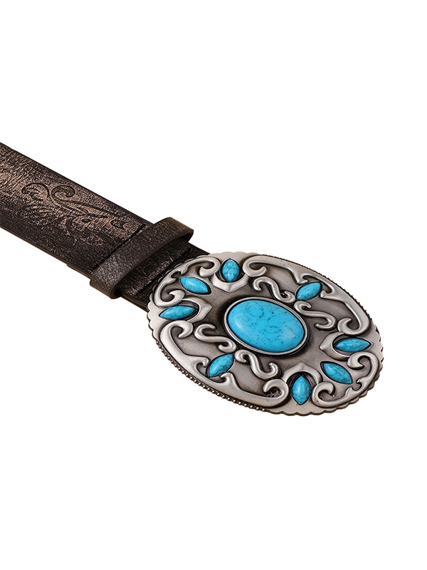 Gürtel mit Stammes-Gravur und blauer Schnalle mit Edelsteindekor
