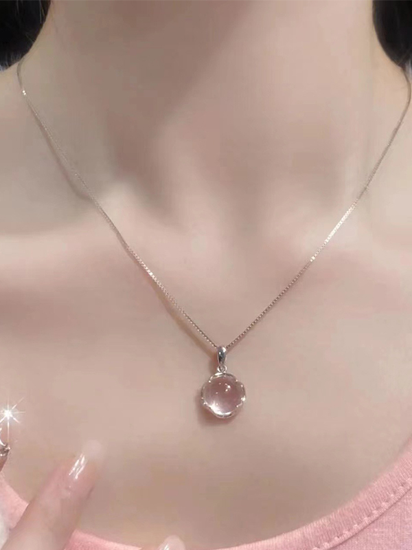 Halskette mit Anhänger aus rosa Kristall