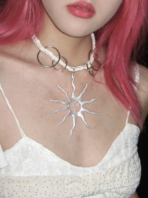 Halskette mit ausgeschnittenem Sonnenanhänger, Metallring und Seil