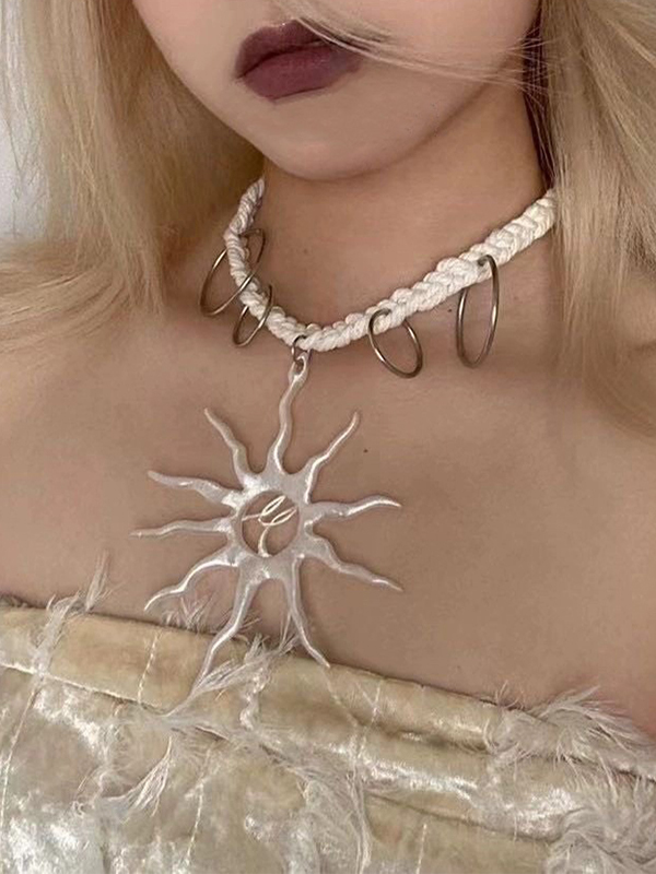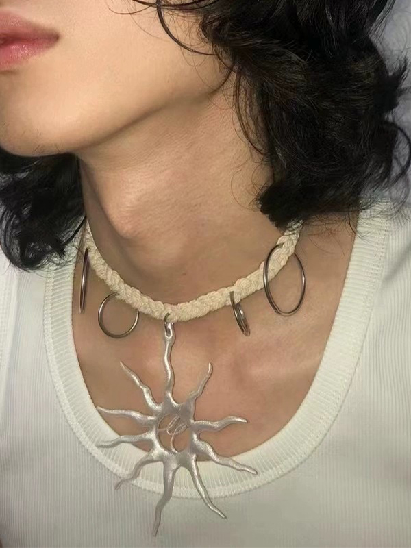 Halskette mit ausgeschnittenem Sonnenanhänger, Metallring und Seil Menge