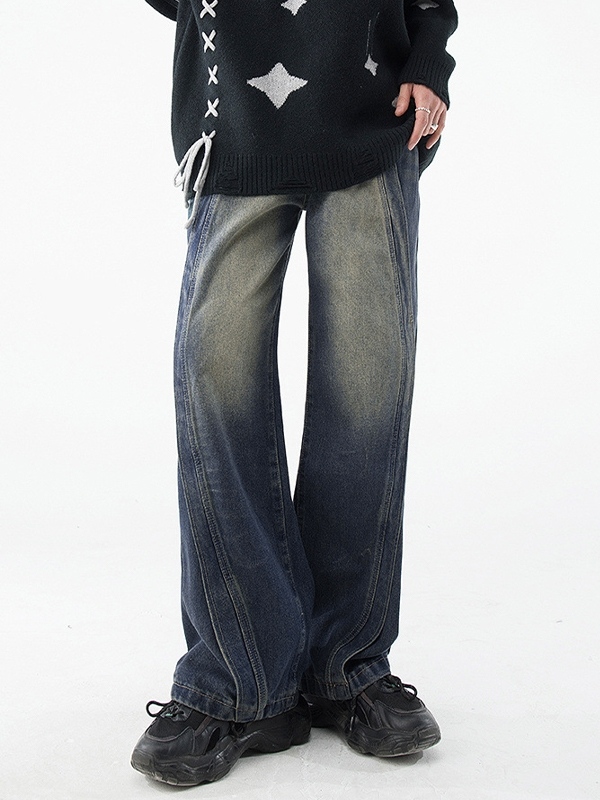 Herren-Jeans mit Vintage-Waschung und Splice-Motiv