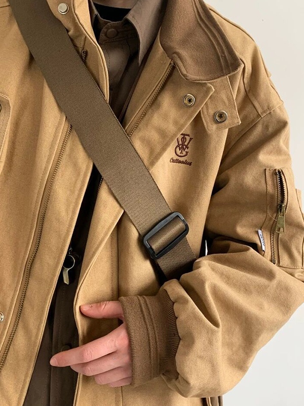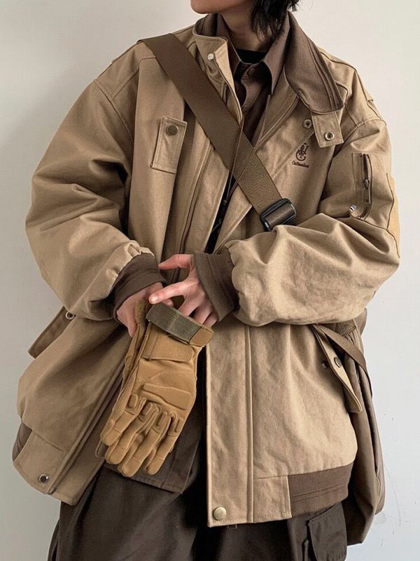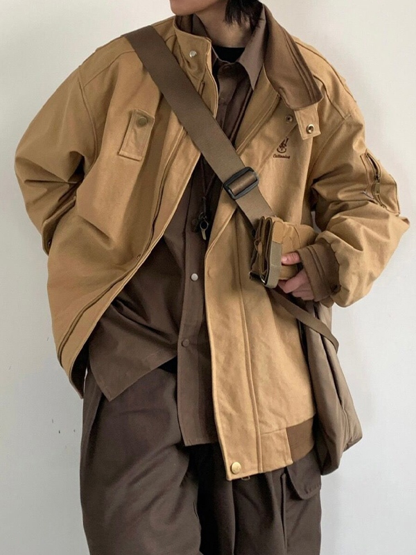 Herren-Spleißjacke mit Vintage-Stickerei und Reverskragen