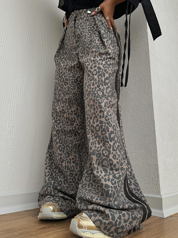 Hose mit weitem Bein und Leopardenstreifen an der Seite Menge
