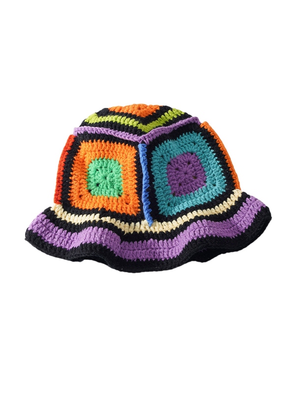 Kontrastfarbene Strickmütze mit quadratischem Design Menge