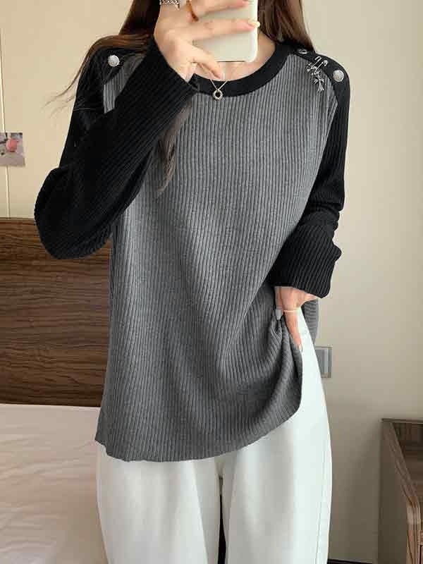 Kontrastfarbener, langärmliger Strick mit Spleiß- und Metalldekor