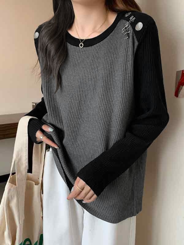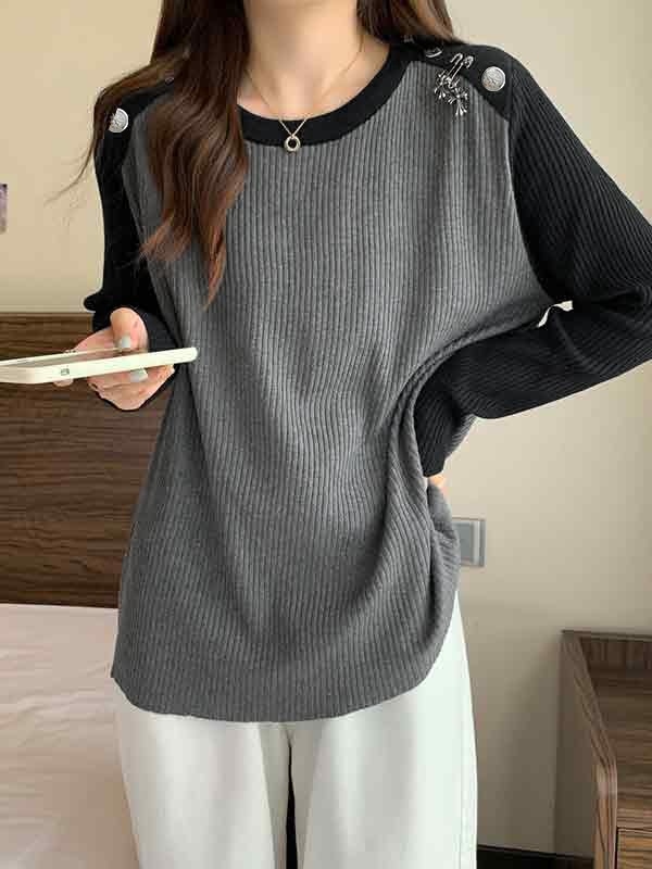 Kontrastfarbener, langärmliger Strick mit Spleiß- und Metalldekor Menge
