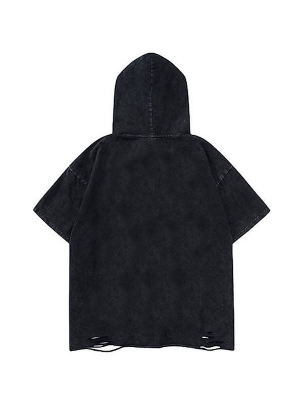 Kurzärmliges Herren-T-Shirt mit Distressed-Print und Tattered-Saum-Kapuze