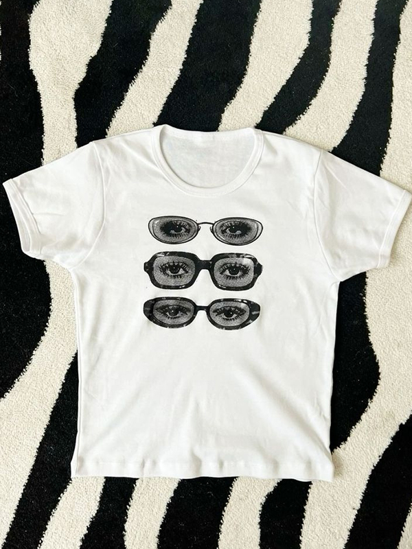 Kurzärmliges T-Shirt mit Brillen-Print Menge