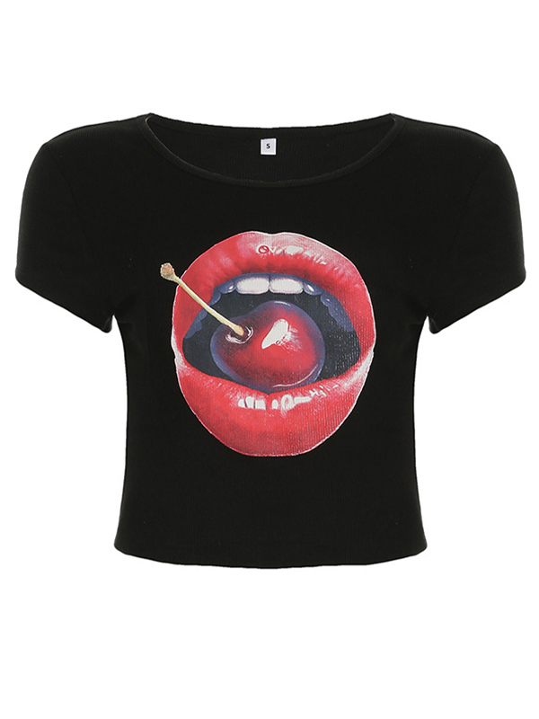 Kurzärmliges T-Shirt mit „Cherry Lips“-Print Menge