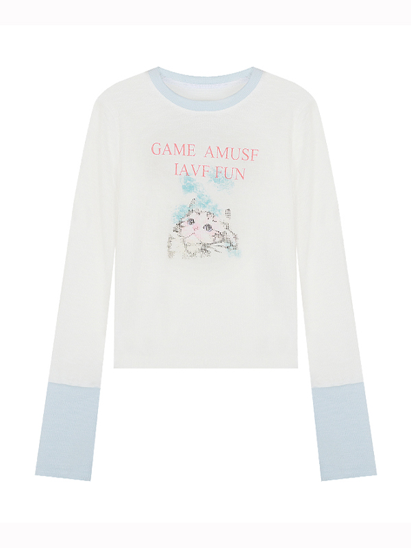 Langärmliges T-Shirt mit Katzen-Print Menge