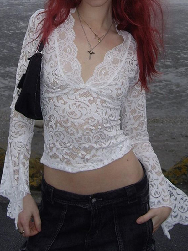 Langarm-T-Shirt mit Spitze