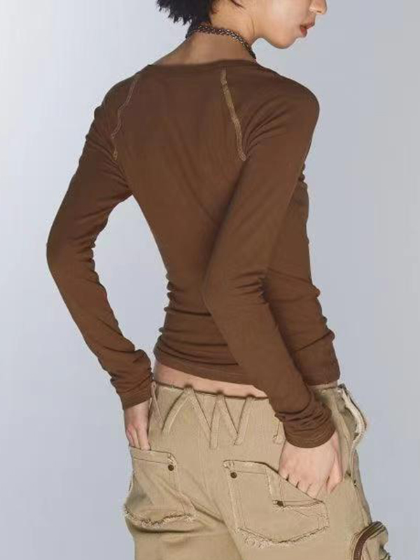 Langarm-T-Shirt mit V-Ausschnitt und Vintage-Print