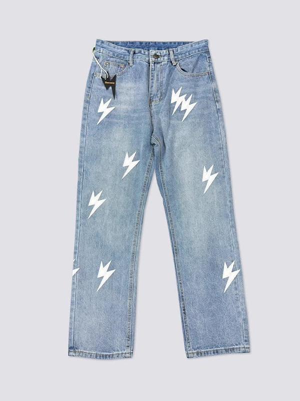 Lockere Jeans mit Patch-Leder-Lightning für Herren Menge