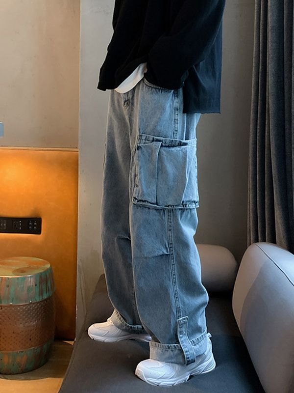 Lose Jeans mit gewaschenem Taschenaufnäher für Herren Menge