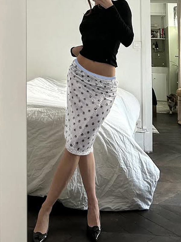 Maxirock mit kontrastierenden Tupfen und Pailletten