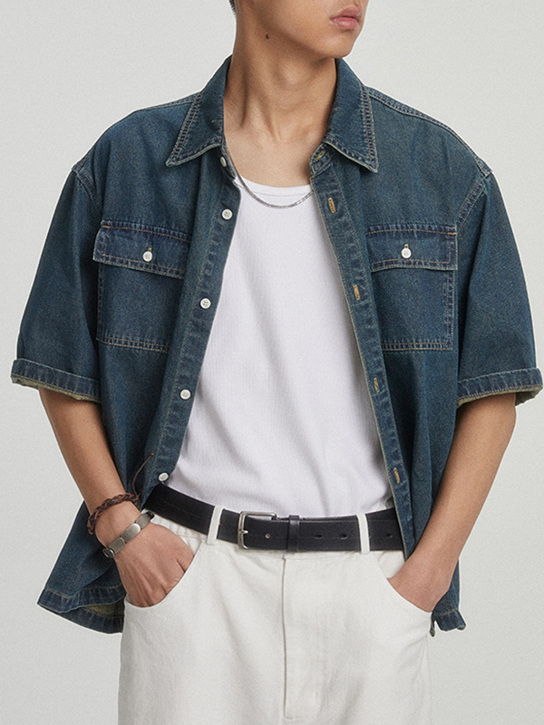 Retro-Arbeitskleidung aus Denim mit kurzen Ärmeln